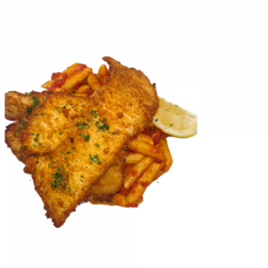BREADED CHICKEN WITH POMODORO PASTA (CONTAINS GLUTEN)